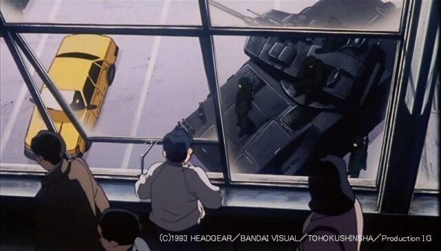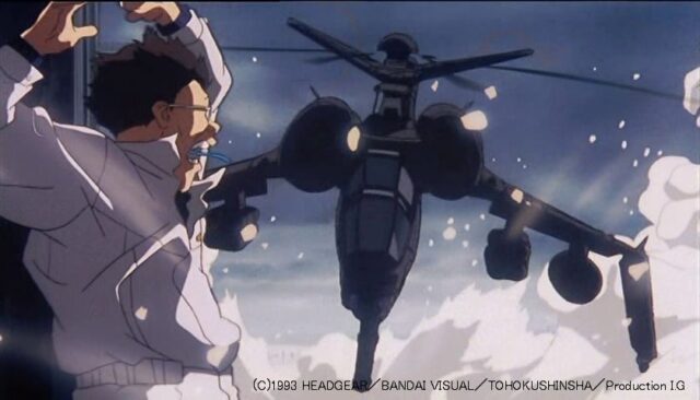唐突に終盤の十数分感がいつものパトレイバーと化す防弾アーマーを浴びたイングラム1号機&2号機の活躍が活きるドンパチ合戦と劇伴がまた堪らない!!