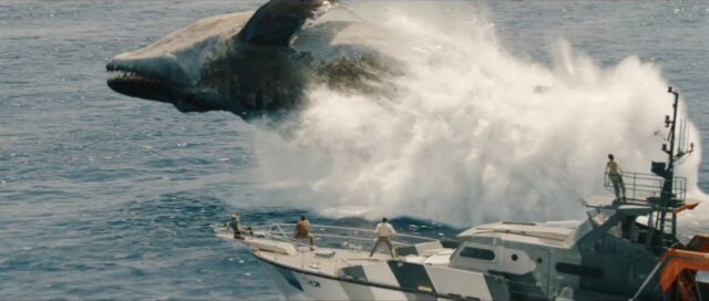 海洋で背ビレに見せたモササウルスにヨット⛵️が襲われたり、ミッションの為に乗る🚢なんか「オルカ号」みたいな作りで跡追い掛けたりその先っぽで銃構えるなんてもろ「JAWS」じゃん!!