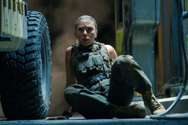 髪の毛金髪ポニテで少し汚した事で若返ってた今作のスカヨハさん、やっぱりタンクトップ似合うんし胸の揺れは健在❣️