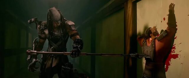 巨大な武士の城内にて武士と忍者が対決する最中に、様子を伺っていたプレデターが突如として参戦し殺戮を開始する!