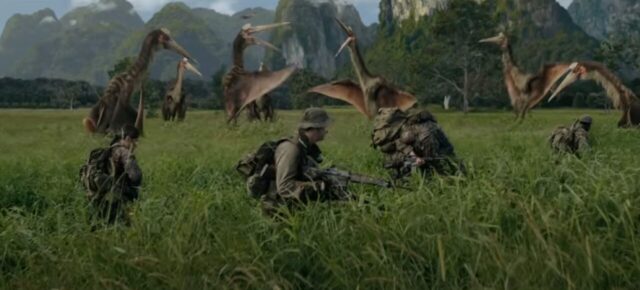 とてもB級映画とは思えぬ力入り過ぎCGで最近の学術的に正しいとされる羽や毛の生えた獰猛なT-REXやユタ・ラプトルの群れに臓器ついばむ翼竜ら恐竜造形が素晴らしい👍