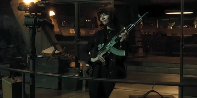 黒のタンクトップ姿で音楽を掛けノリノリで踊り望遠鏡越しの青年と射撃技能披露しあってる前半から一転し愛する彼の危機に対し崖から🪂降下し、グレネード撃ち込み弾切れになる迄に怪物らと戦闘劇を繰り広げて魅せる姿がカッコいい✨