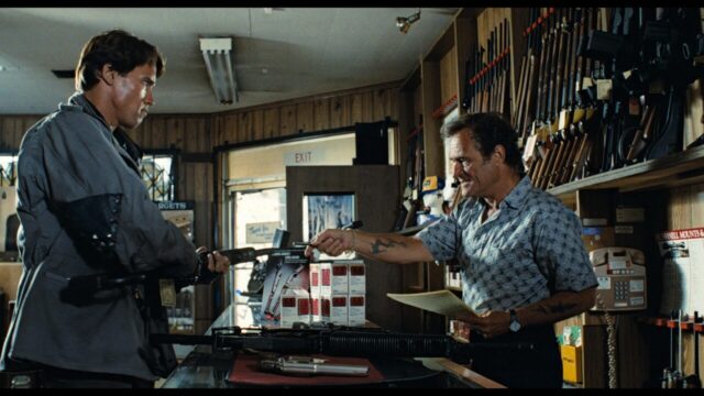 実は最近になって勿論好きな全力守るマンなT2よりも1作目のマシンガン&ショットガン振り回してのこの「立ち塞がる者オーバーKILL」ビジュアルが好みだと気が付いて来た革ジャン+サングラス(眼の正体傷隠し)で片っ端から警官を圧倒して撃ち殺しまくる悪の無双劇が堪らなくカッコいい!!